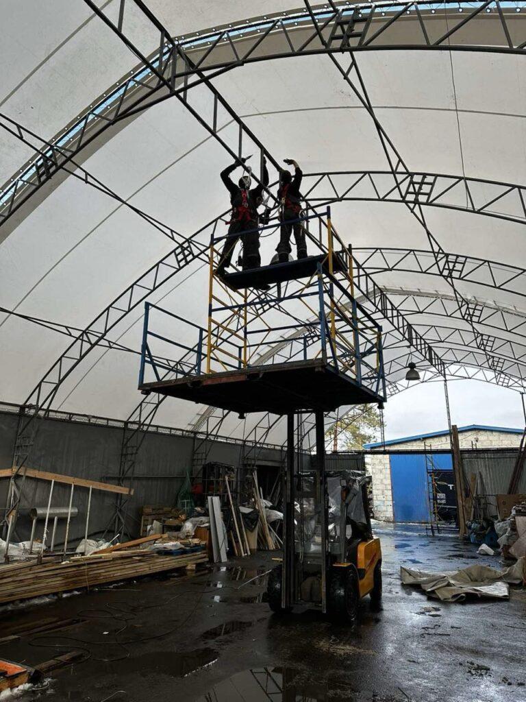 Фахівці компанії виконують повний комплекс робіт — від демонтажу старого тенту до встановлення нового.